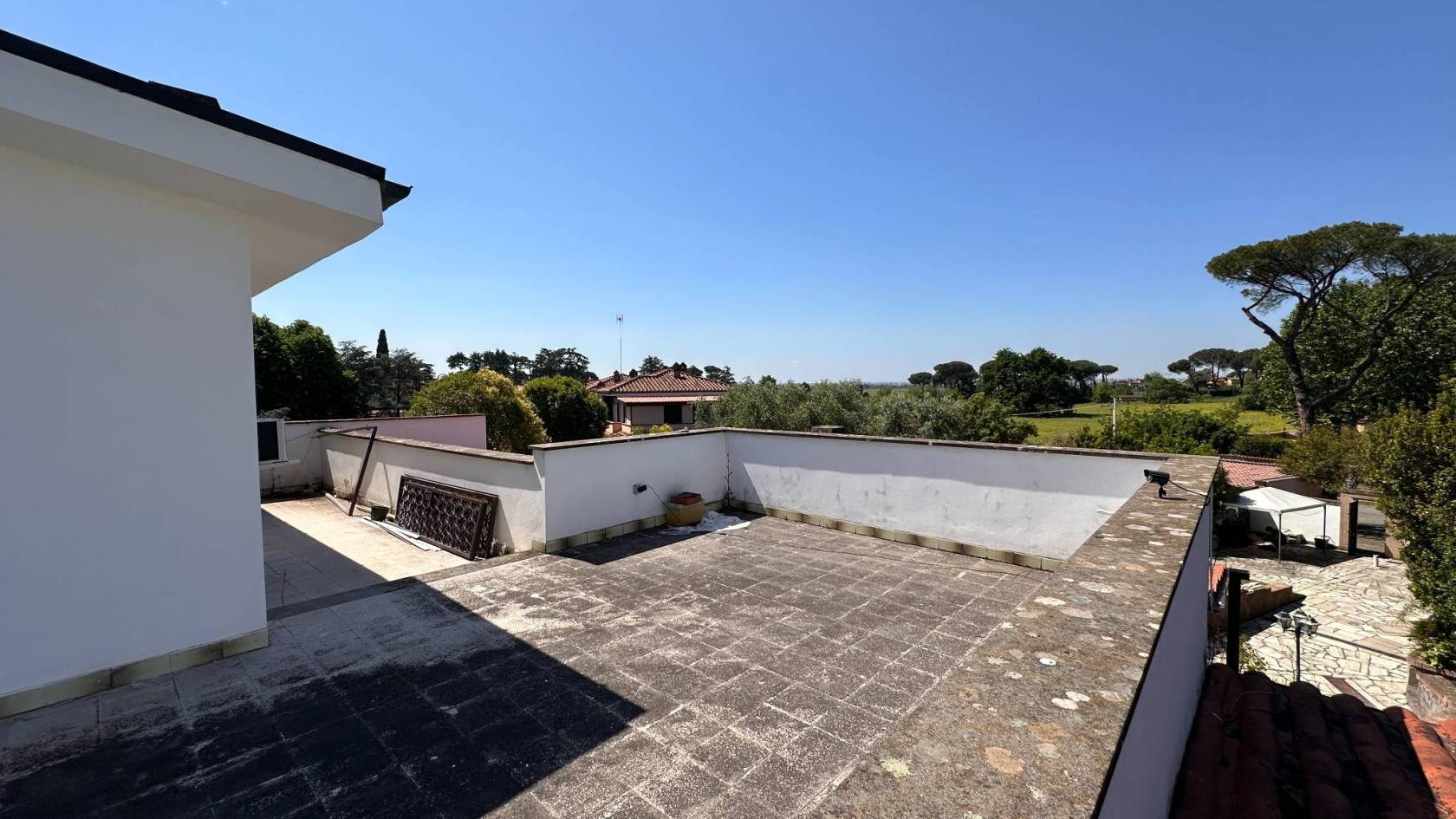 Gli esterni della villa si caratterizzano per numerose terrazze, tra cui una di circa 80 mq, che offre scorci suggestivi e ampie possibilità per creare zone relax o solarium. La proprietà, in buone condizioni, è pronta ad essere personalizzata per soddisfare ogni esigenza.